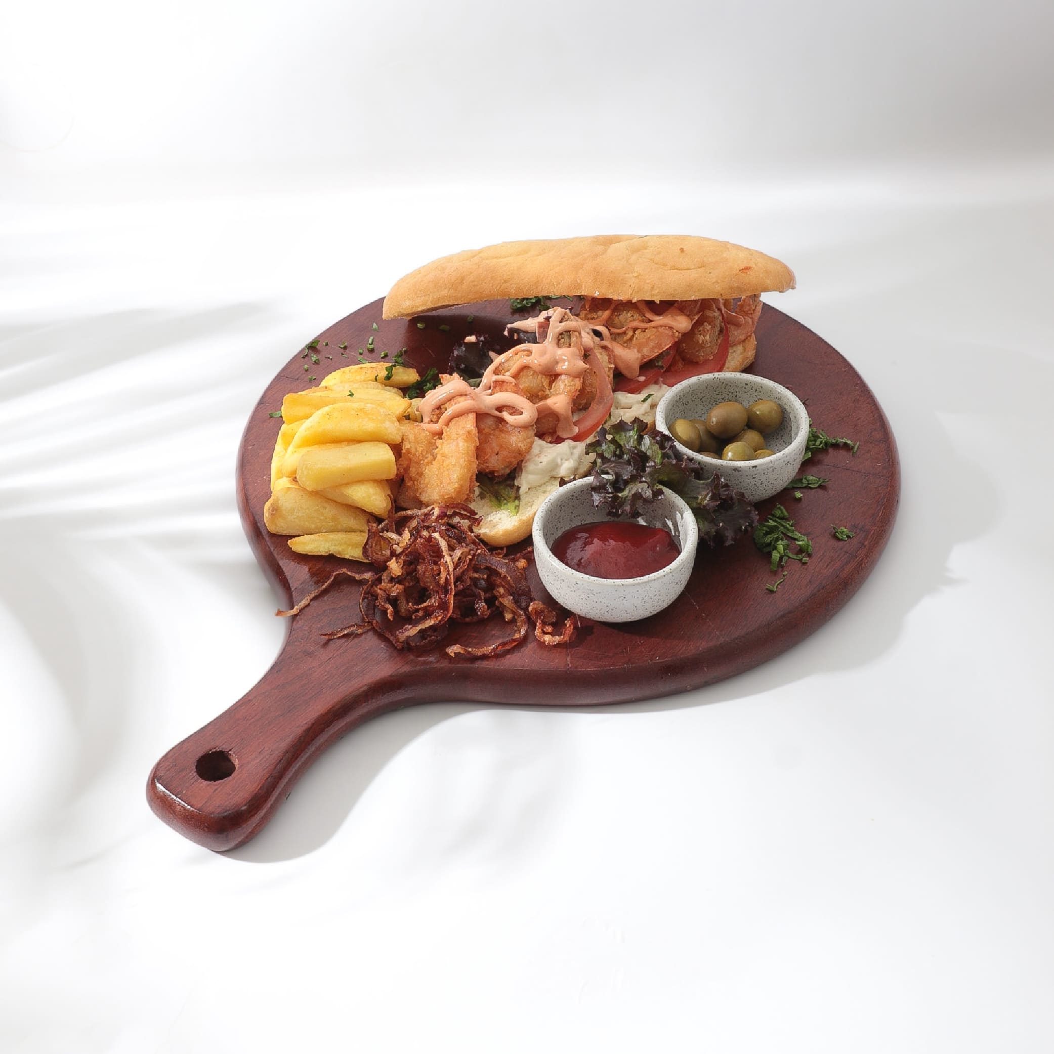 جمبري مقلي في باجيت طازج مع صوص التارتار والبطاطس المقرمشة Fried shrimp in fresh baguette with tartar sauce and crispy fries