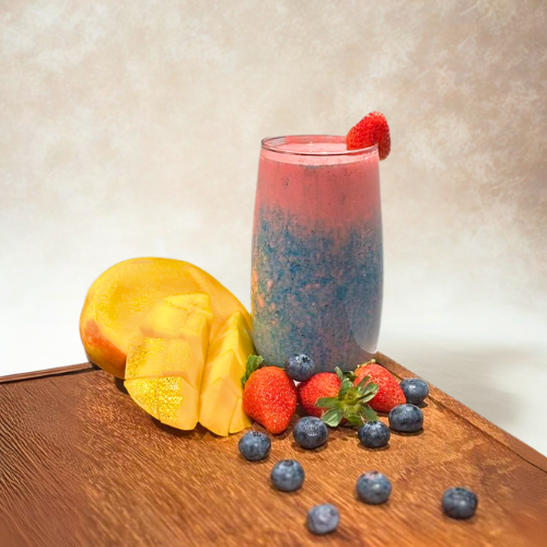 مزيج لذيذ من الفراولة، المانجو، والتوت الأزرق مع خلطة فندر المميزة، يمنحك انتعاشاً وطعماً استوائياً لا يقاوم. | A delicious blend of strawberry, mango, and blueberry with Vander’s special mix, delivering irresistible tropical refreshment.